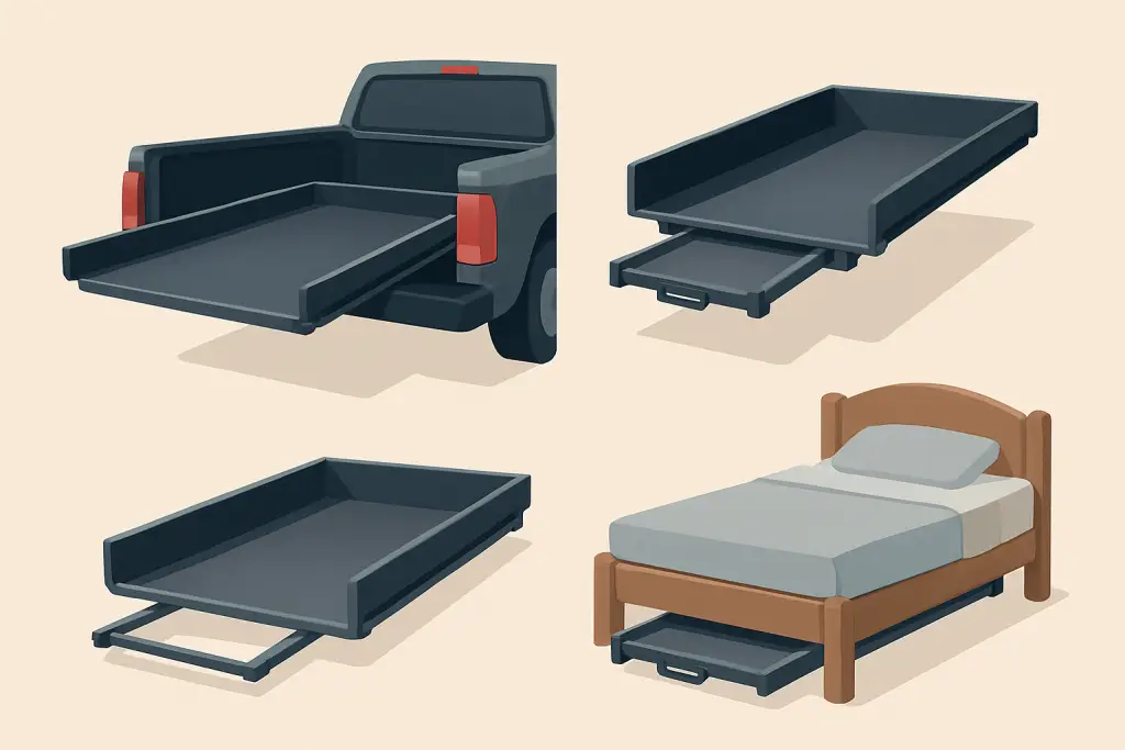 What is the difference between a truck bed slide-out tray and a truck bed drawer?